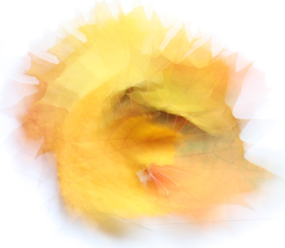 Размытое изображения кленовых листьев, полученное вращением объектива во время съемки
