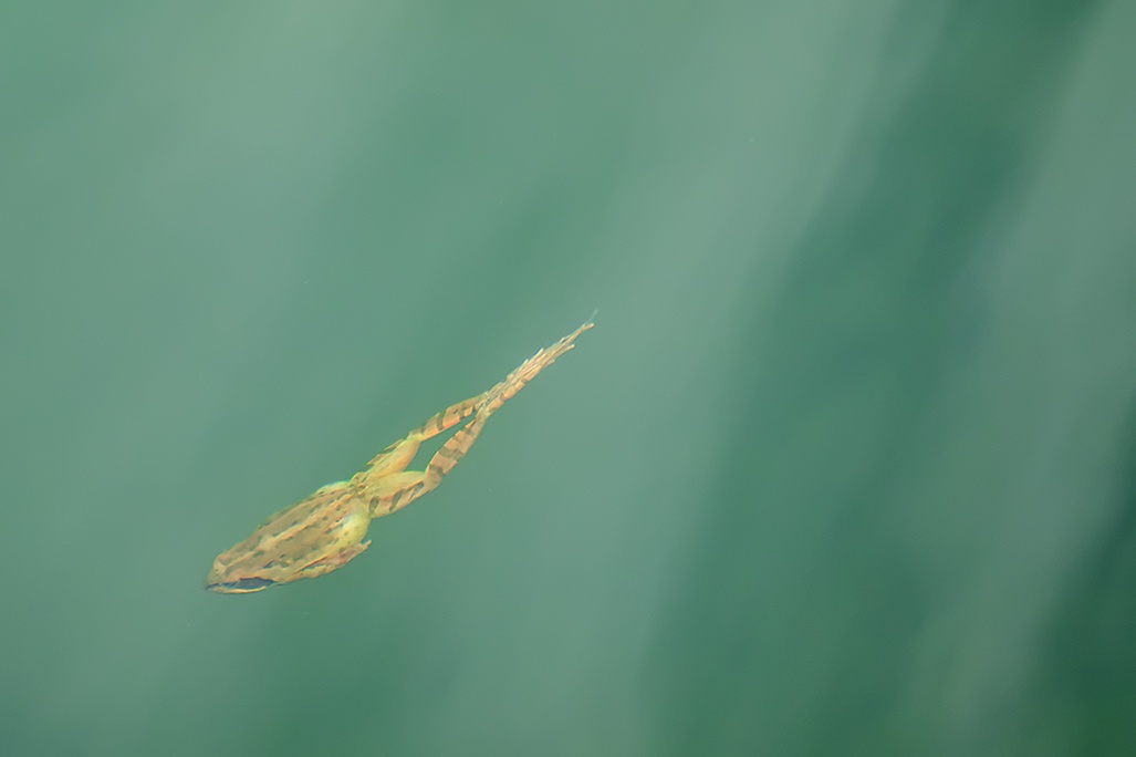 Представитель отряда бесхвостных земноводных - малоазиатская лягушка (Rana macrocnemis) перемещается под водой.