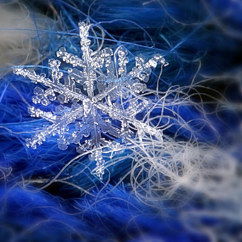 Автор: V E R A Автоэкспозиция при точечном замере, автоматический баланс белого, ISO200, f16.0, 8sec, 150mm. Снежинка сфотографирована на балконе без вспышки в пасмурную и ветренную погоду, при температуре -5С, упала на варежку. При фотографировании применялись макрокольца и 1,5-телеконвертер. Кроп примерно 14 кадра. Исходный файл формата RAW, обработан в CS2