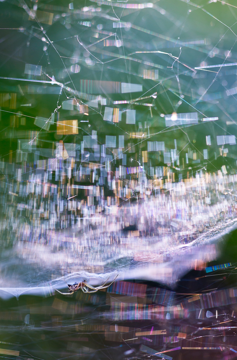 В контровом солнечном свете паутина в виде гамака превращается в «северное сияние» даже в южных широтах.