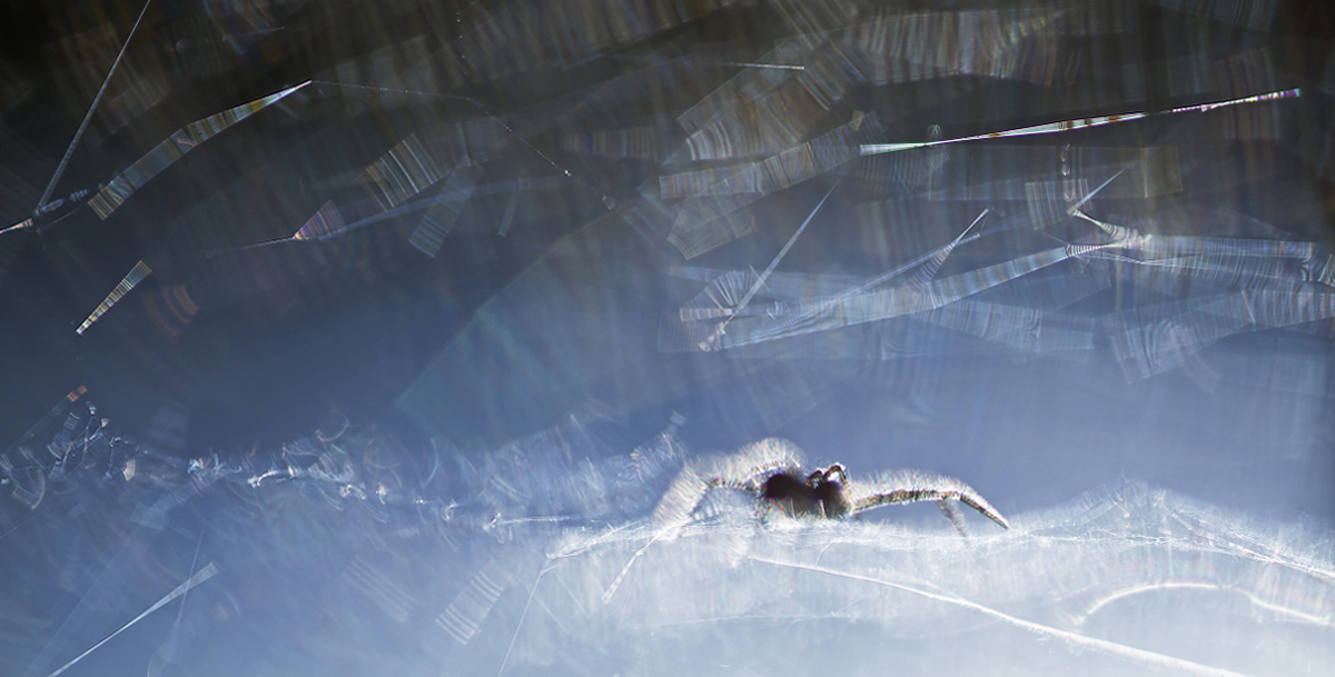 Фотографируя паука на паутине, контровой солнечный свет рисует совершенно фантастические картины. На этом снимке мне видится суровый «арктический пейзаж» с северным сиянием и замерзающий одинокий путник...