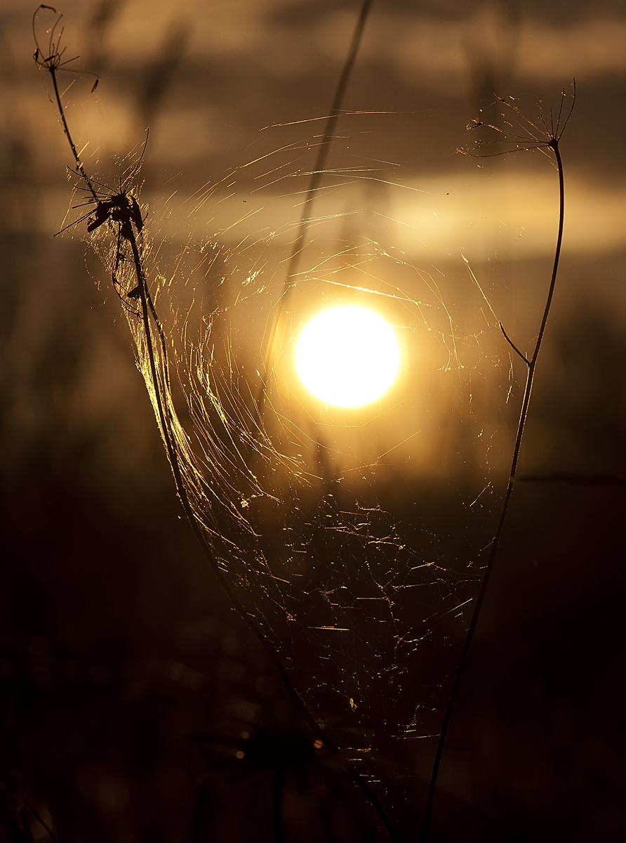 Вот такую вот ловушку сплёл паучишка. Снято на Никон D5000 со 105мм объективом.