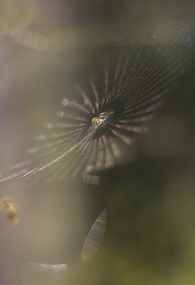 Маленький паучок на своей паутинке, сотканной у самой земли, в лучах заходящего солнца...