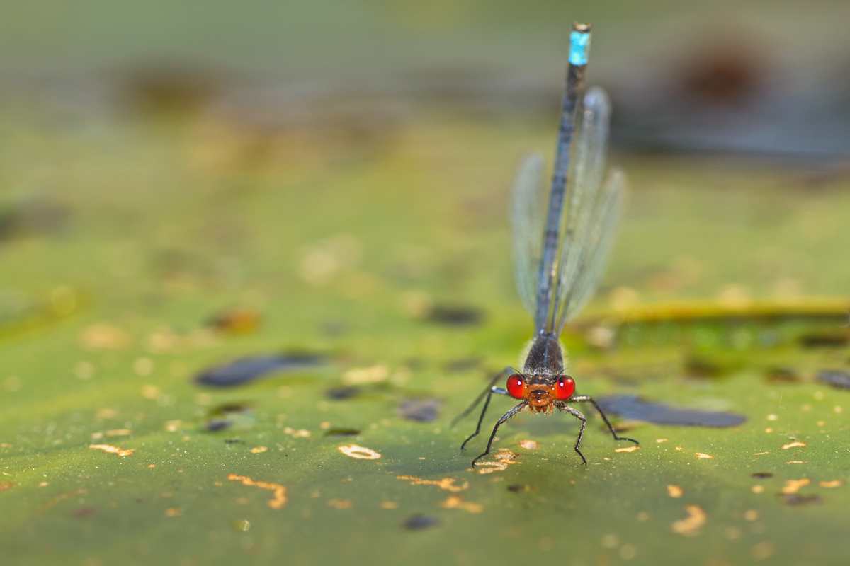 Токсово, озеро Кривое. Съемка велась из воды, с риском утопить фотоаппарат. Стрекоза сидит на листе кувшинки.
