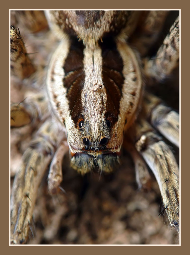 Большущий паук. Сидел под бревном и совсем не сбирался убегать, видимо так был уверен в себе. Снято в районе Туапсе.