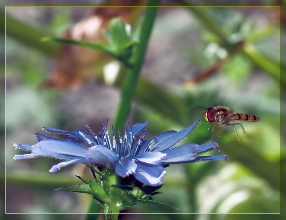 Автор: Васильев_Игорь Интересно, что цикорий в Пскойской губернии, в основном, растет вдоль дорог. К счастью, данный экземпляр был пересажен моей мамой в наш сад. Все-таки летающих так сложно снимать, чтобы поймать в фокус семь потов сойдет, кажеться вот оно, а потом смотришь на компе и сердце сжимаеь ледяная рука разочарования...