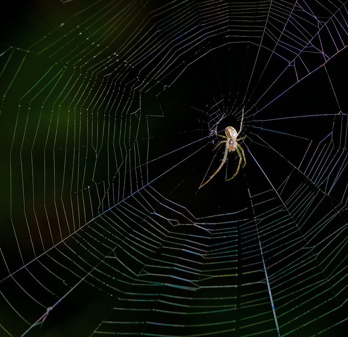 Это была основа будущей паутины. Затем Паучок построил внешнюю рамку сети и натянул радиальные нити, каждая из которых проходила через центр буквы «Y», так, что в итоге все нити расположились по окружности - как спицы в колесе. И только потом, внимательно и осторожно передвигаясь «по спирали», наш неутомимый строитель стал накручивать последнюю – липкую нить, выпуская её из специального отверстия на брюшке.
