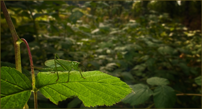 Кузнечикам прыгать по мокрой траве тоже почему-то не хотелось. Неуклюже переползали они с места на место, пытаясь найти участок посуше. Лишь некоторые из них, особенно нетерпеливые, пробовали настроить свои «скрипочки», время от времени издавая первые недолгие трели, которые тут же обрывались. Один из них забрался на лист лесной малины и внимательно осматривал ближайшие окрестности.