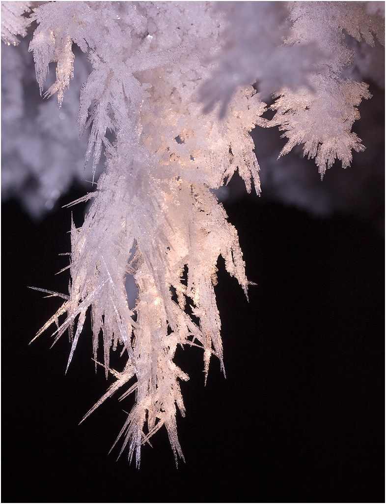 Саблинские пещеры по Петербургом, там у входа такая изморозь на стенах.