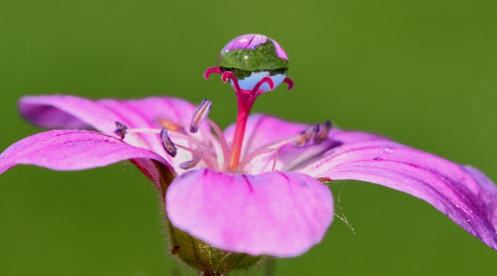 (Категогория: Радуга жизни) Автор: Натали Раннее утро, когда роса всюду сверкает на траве и цветах - моё любимое время. Ползая с лупой среди цветов и травы я стараюсь найти то, что не видно сверху невооруженному глазу. И всё вокруг предстаёт в новом качестве. И капелька на пестике герани кажется целым миром.