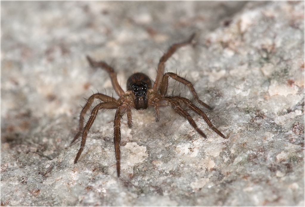 Потревоженный малыш тарантула. Через пару минут он найдёт место рядом со своими братьями и, как и они, плотно прижмётся к маминой спине.