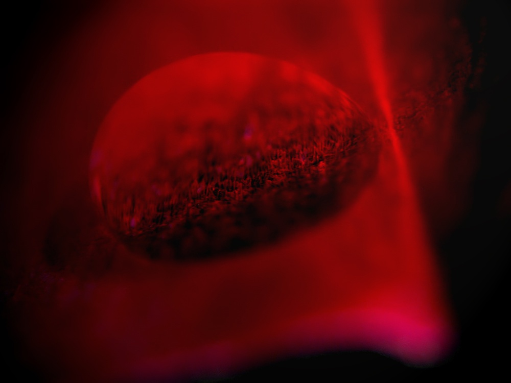 Лепесток тюльпана и капля воды, подсветка на стекле.