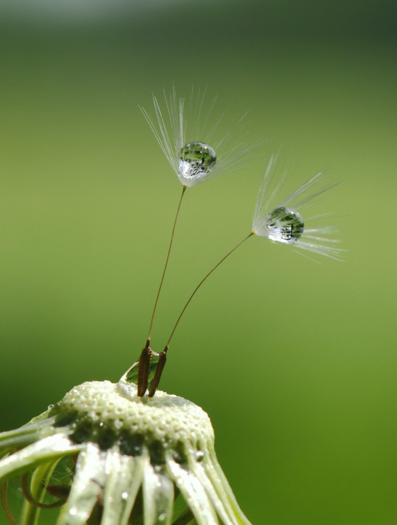 Две пушинки опавшего одуванчика, сохранившие на себе, ещё не испарившуюся ночную росу.
