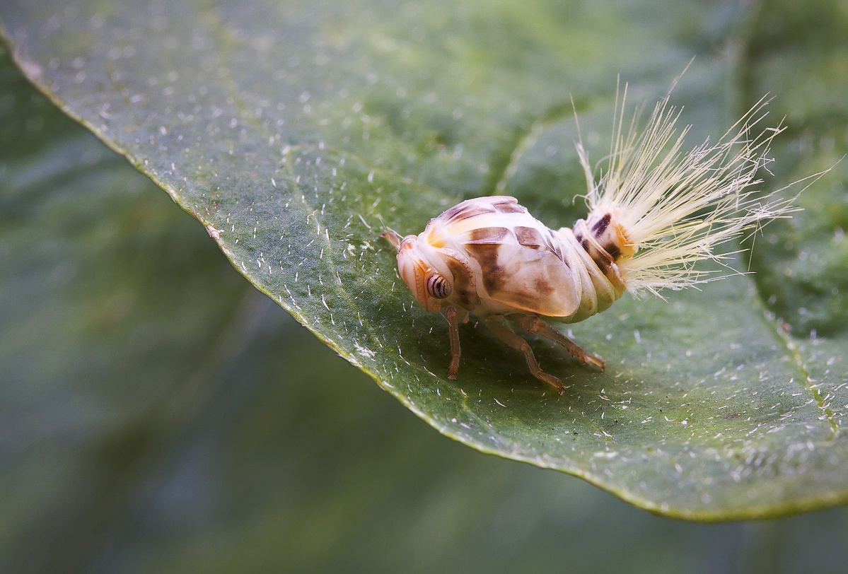 Нимфа цикадки-бабочки японской (Ricania japonica Melichar, 1898) Размер 3 мм без кисточки, стекинг из 4 кадров, Raynox-250