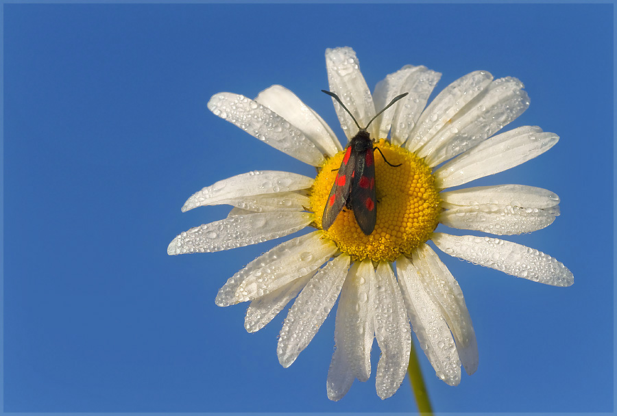 Сколько же здесь всего: мамаша, россыпь малышей (один - так вообще на ее ноге сидит), паутина, травинки-былинки, капельки, ромашка... И все это каким-то чудным образом гармонирует и не создает ощещения хаоса!