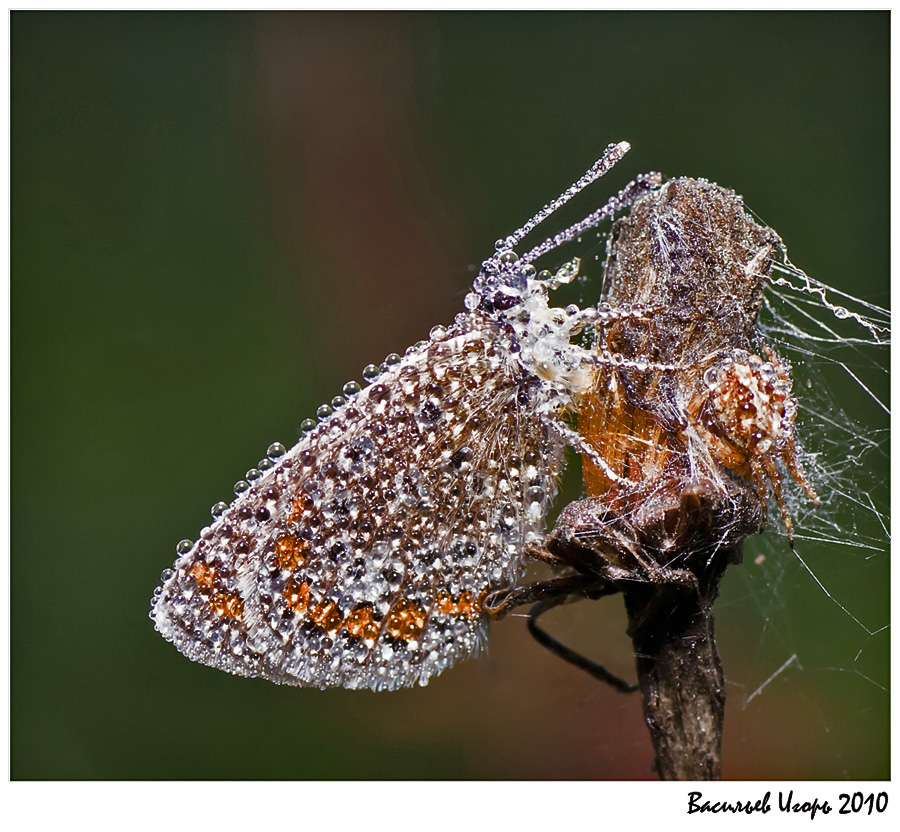 Шикарная бабочка в капельках, и композиция кадра хорошая!