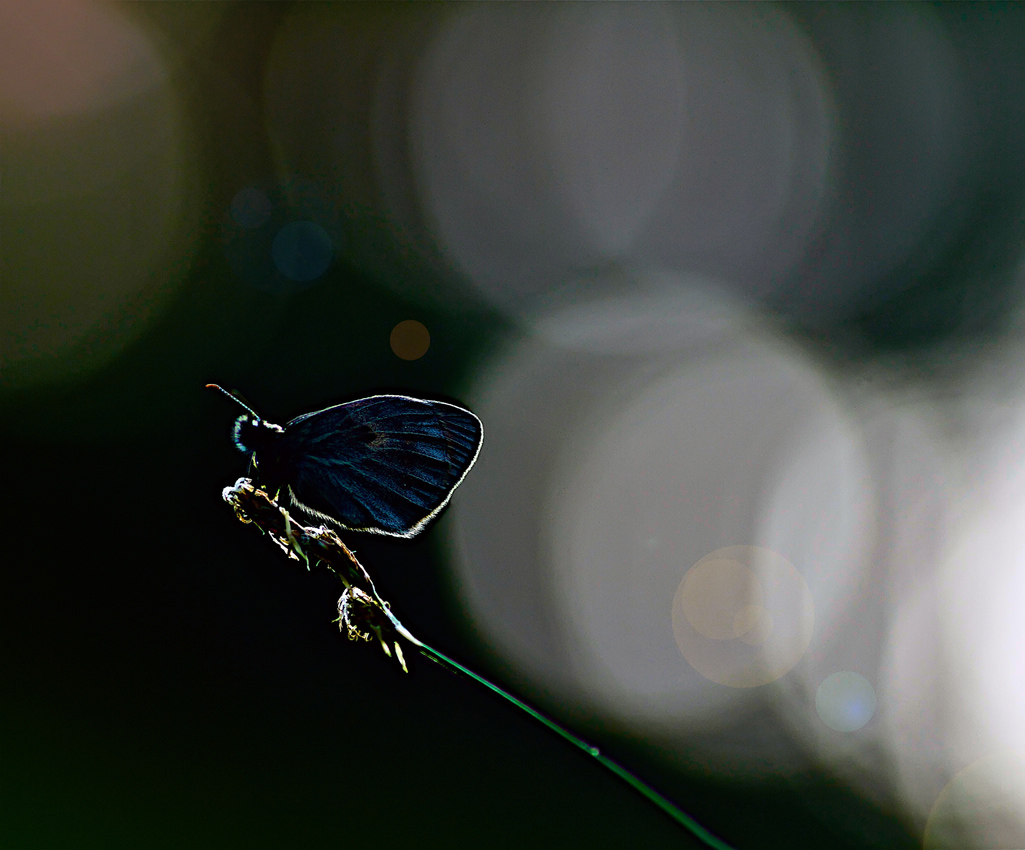 Кадр строился вечером, утром же под грузом капелек бабочка провисла
