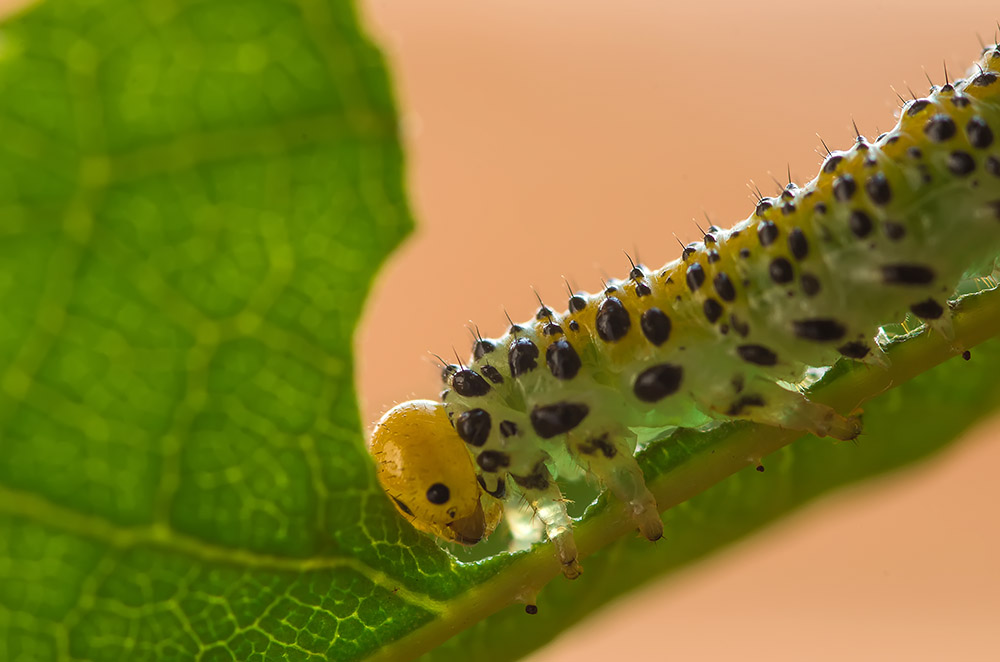Забавные личинки у пилильщиков! Голова, как у птенца сипа.
