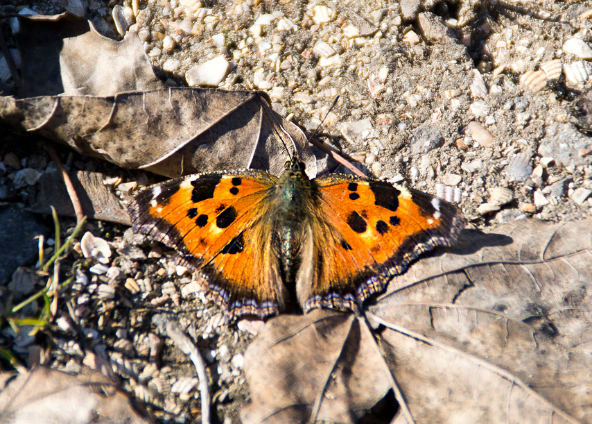 Неля сфотографировала крапивницу - Aglais urticae (Linnaeus, 1758). А у Вас многоцветница черно-желтая - Nymphalis xanthomelas (Esper, 1781). Впрочем ошибка невелика. Ранее эти бабочки рассматривались в составе одного рода, а эта многоцветница даже называлась большой крапивницей.