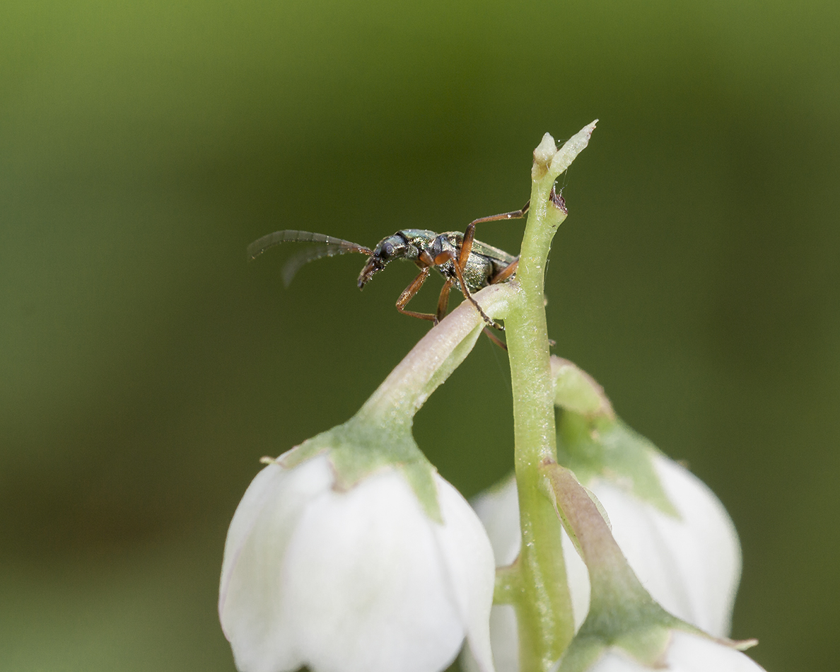 Чудесное фото жуков и их личинок и описание их жизни. Осталось неописаным мелкое светлозелёное существо на ветке возле лапки одного из жуков.