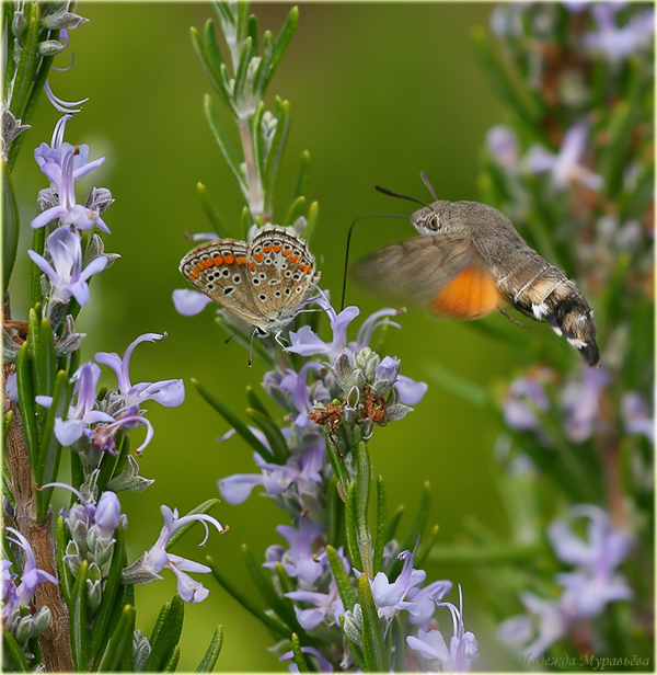 Ну, ничего себе!!!!!!! Я в августе в Феодосии таких видела, сын кричал: мама, смотри, колибри!!!!!!!!! Но чтобы сфотографировать, да еще так!!!!!!!!!! Они же неуловимые!!!!!!!!! И ниикаких правил - очень долго можно рассматривать, цветы тоже свой рисунок создают!