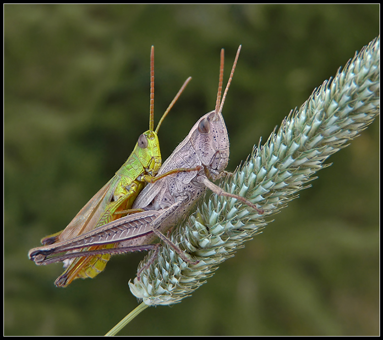 А я еще удивлялась, почему к осени кобылки только коричневые встречаются?! А это оказывается самки,по-видимому просто живут дольше самцов  ...
