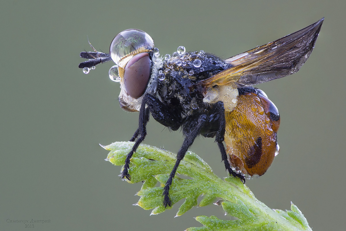 Муха живая. Просто кончики крыльев, по каким-то причинам были слипшиеся (может паутина какая, или от росы..)