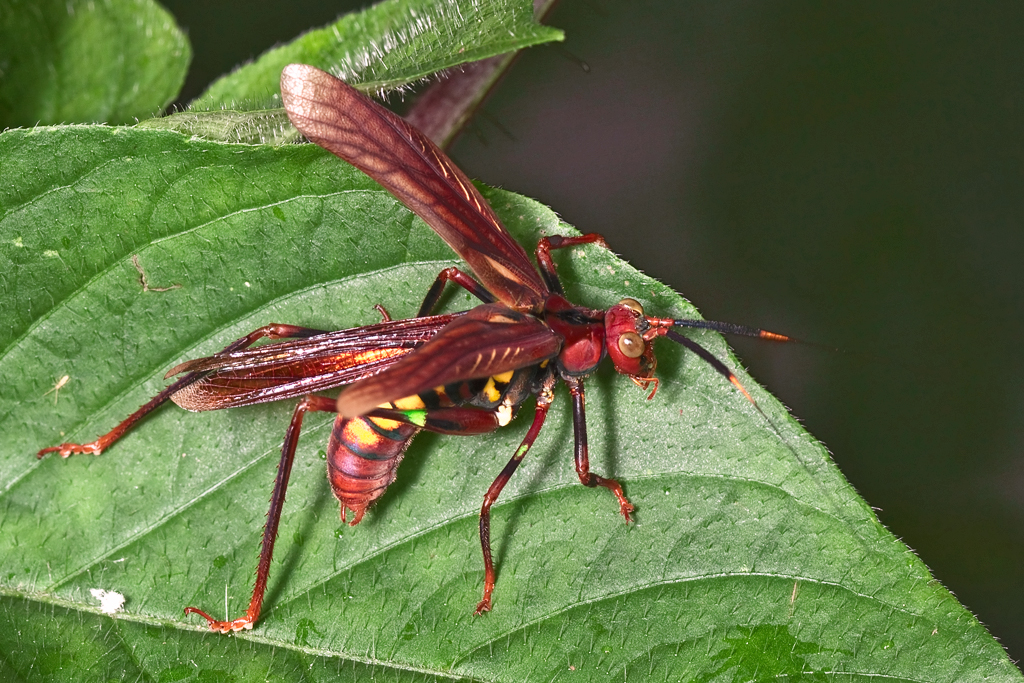 То есть - то ли оса под кузнечика, то ли кузнечик под осу  Интересно было бы все-таки его определить. Попробую вставить другой кадр, на котором крылья не сложены, а слегка раскрыты.