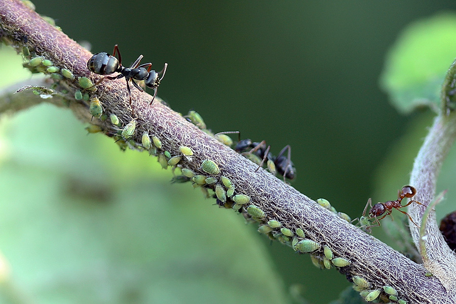Уважаемые одноклубники! Подскажите, пожалуйста, разве могут муравьи разных видов мирно доить одних и тех же тлей?