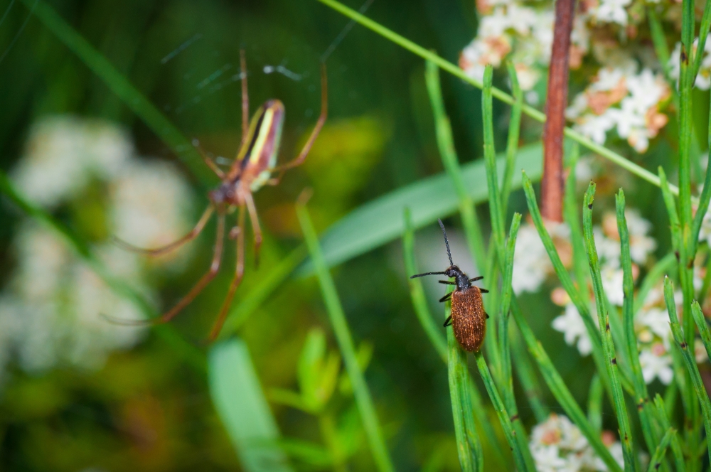 паук тетрагнтата Tetragnatha sp , жук- мохнатка Lagria hirta