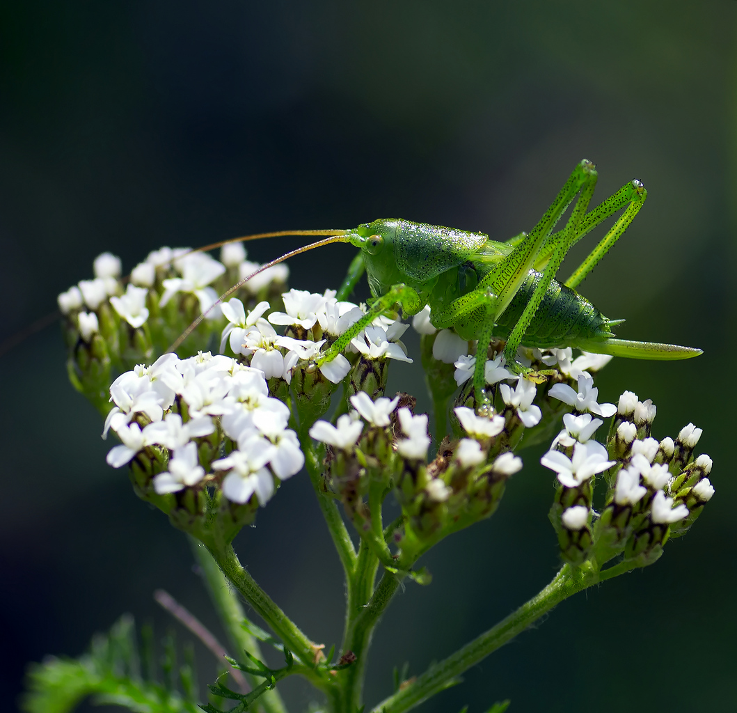 она устроилась на ночевку на верхушке травинки