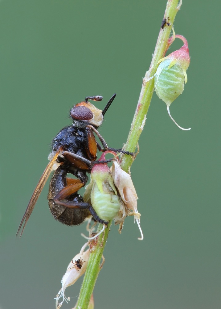 Мушка осталась цела, то ли постеснялся моего присутствия, то ли посчитал мелкой для себя не стал нападать просто, внимательно проводил взглядом... вот еще фото где мушка отползла уже