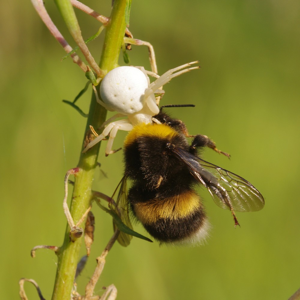 Ага, еще тут понял, что реакция у них молниеносная, у шмеля никаких шансов. Мне сегодня этого товарища - http://macroclub.ru/gallery/showphoto.php/photo/65895/ppuser/11089 за которым сутки наблюдал (а сидит не знаю сколько) стало жалко - в том месте он никого не поймает, и я кинул ему муху. Он сидел как минимум сутки не шелохнувшись ни разу, а схватил жертву практически мгновенно, я обалдел. А этот белый прям как лев - за шею. Совершенство отточено поколениями.