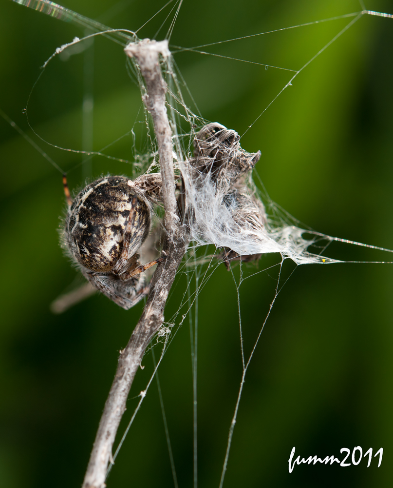 Сегодня стал соучастником такой драмы.  Да именно соучастником, не свидетелем. Шел по поляне, вспугнул кузнеца и он прыгнув, попал в сеть паука. Причем смотрю, он вроде выскочил, большой ведь, но нет, задней лапой запутался и паук быстренько прибежал и запаковал его секунд за 10. Зрелище поразительное скажу я вам!