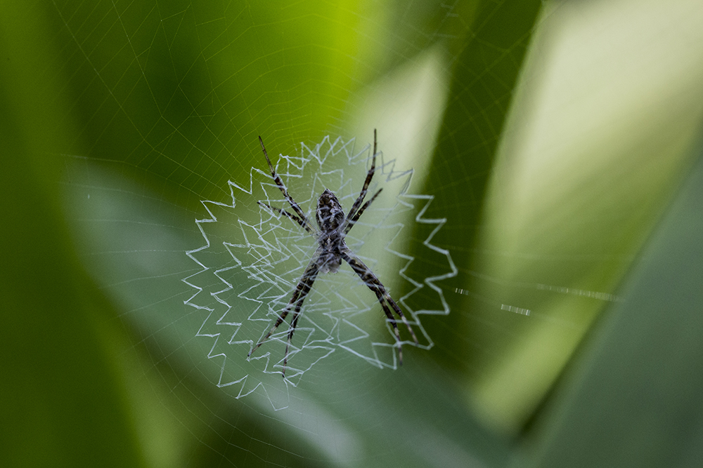 Замечательный узор на паутине! Подобные конструкции создают и кругопряды из рода Аргиопа (Argiope), обитающие в Европе и Азии.