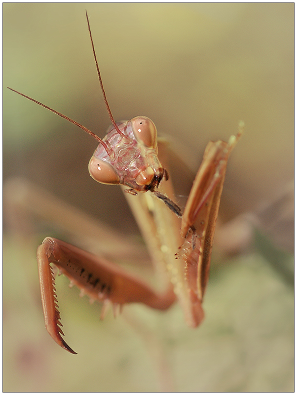 FUMM: В корне не согласен с концепцией сего кадра:Свет крайне проблемный, убивающий фактуру зверя, цветок внизу мешает своей размытостью(именно из-за столь яркого света ИМХО, усы обрезаны совершенно зря.А для полного комплекта считаю, что богомола не стоит "бюстировать" как тут: он целиком очень интересен.Анечка, пощады не ждите: я к Вам неравнодушен!  Ой, как приятно!
