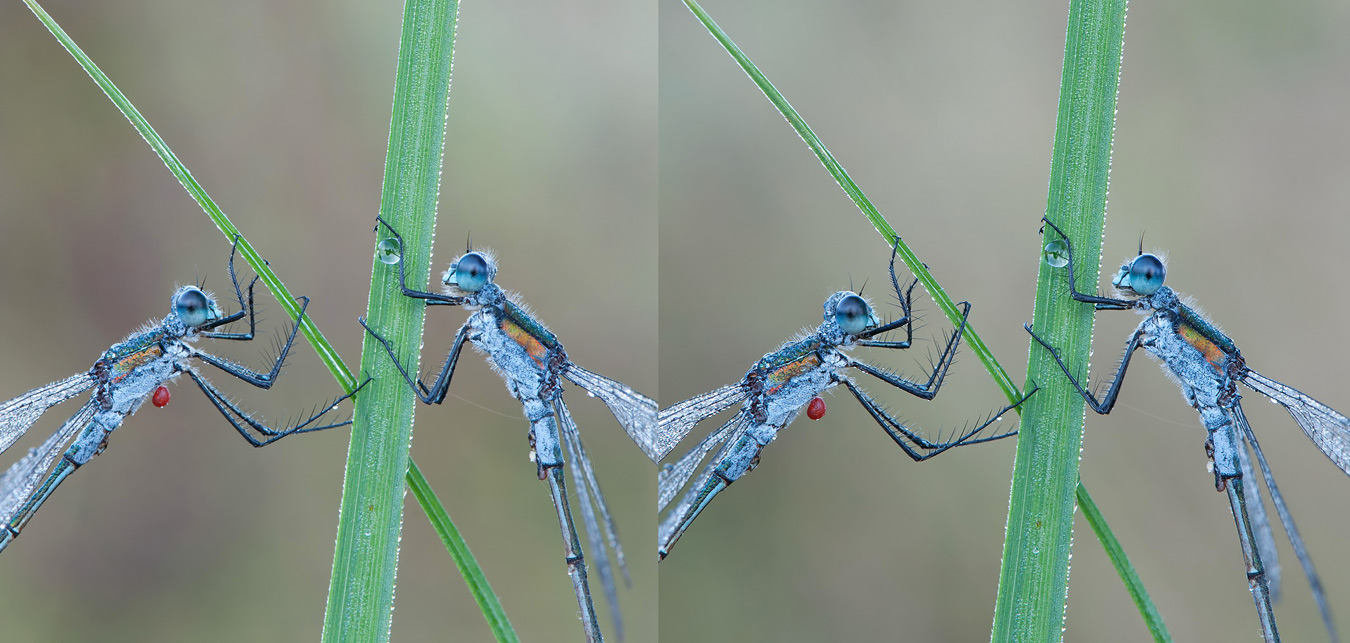 Итак, глядя в видоискатель я стараюсь поймать в фокус то, что находится ближе ко мне. Позаботившись загодя, чтобы хода рельс хватило от переднего плана до заднего. Я не знаю как другие оценивают ширину будущей области резкости, которая получится после щелчка фотоаппарата. Я смотрю в видоискатель и вижу резким то, что фотоаппарат мне показывает при открытой диафрагме. Я понимаю, что она меньше, чем на кадре, но в моем фотоаппарате нет функции просмотра глубины резкости, а если бы и была, то я не представляю как предполагать их последующее пересечение, чтобы не было провалов в резкости на конечном изображении. Делая кадр (тросик и задержка спуска), я чуть вращаю колесо макрорельс, чтобы в зону резкости попал следующий "слой" объекта. Желательно с перекрытием с предыдущим. И так пока не дойду до заднего плана. Зажимать диафрагму до 16 не хотелось бы, хотя это даст большую глубину резкости. Но увеличится выдержка и все вытекающие отсюда последствия - шевеленка даже при слабом ветре. Поэтому чаще использую значения 8-11. Количество кадров считаю уже дома. В поле кажется, что 10-12, а дома смотришь - все 30