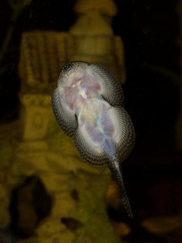Она так прикольно скользит по аквариуму, а когда собирает корм со дна - машет плавничками, как птичка клылышками. Мирная рыбка, никого не обижает и растёт сантиметров до 6, не больше.