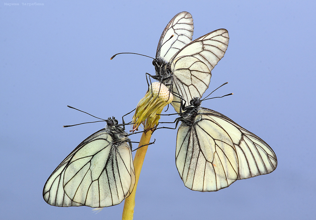 У мнемозины половой диморфизм выражен слабо. Но если присмотреться, то можно увидеть, что брюшко у самцов оволошено со всех сторон (черевце волохате ). У самочек оно сверху голое. У самцов стекловидные (= лишенные чешуек) участки на переднем крыле обычно охватывают его вершину, а у самок распространяются на весь край крыла. И самочки обычно темнее. Как-то так.