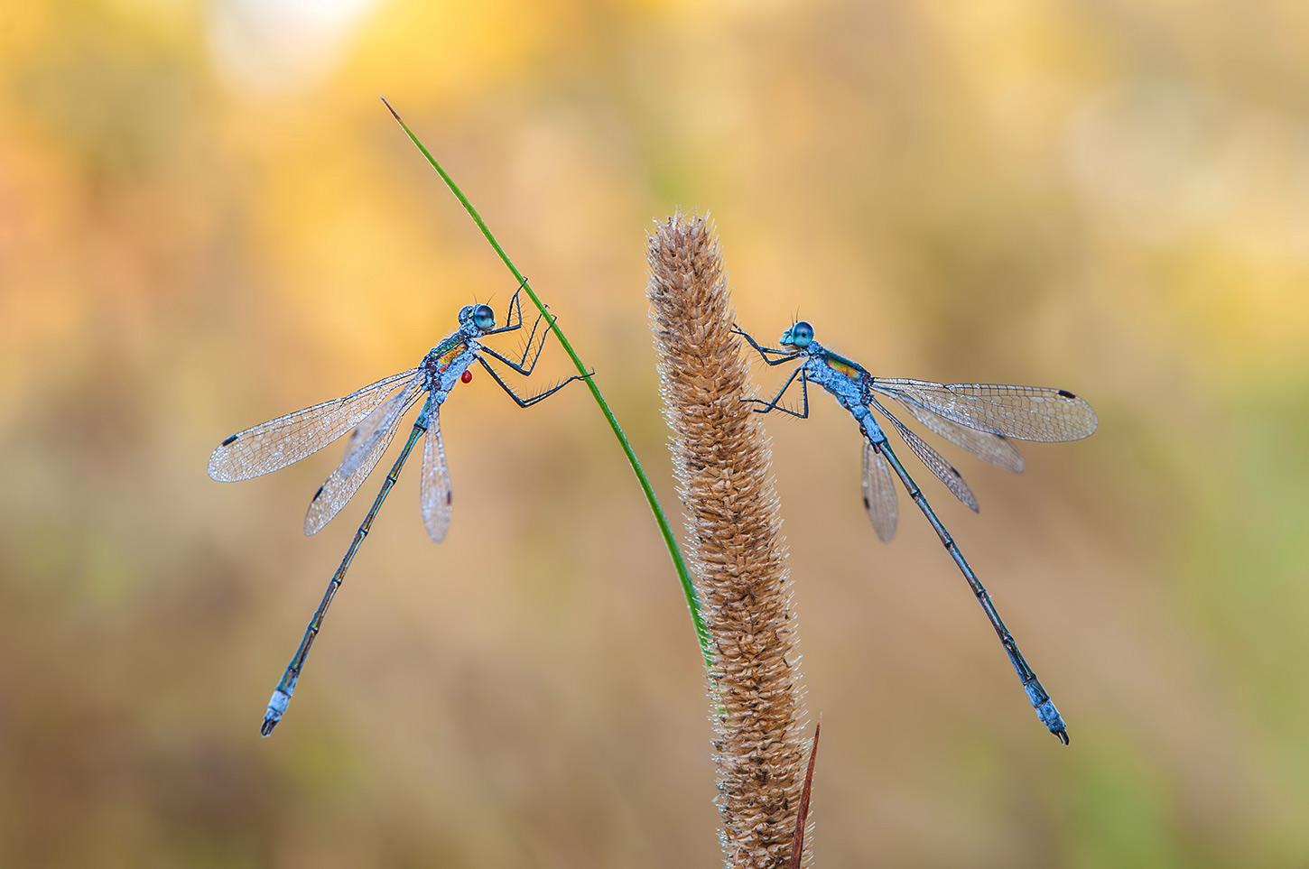 Кто-то выбирает стабильность, а кто-то... На левой, кажется, клещик примостился. Очень хорошее фото