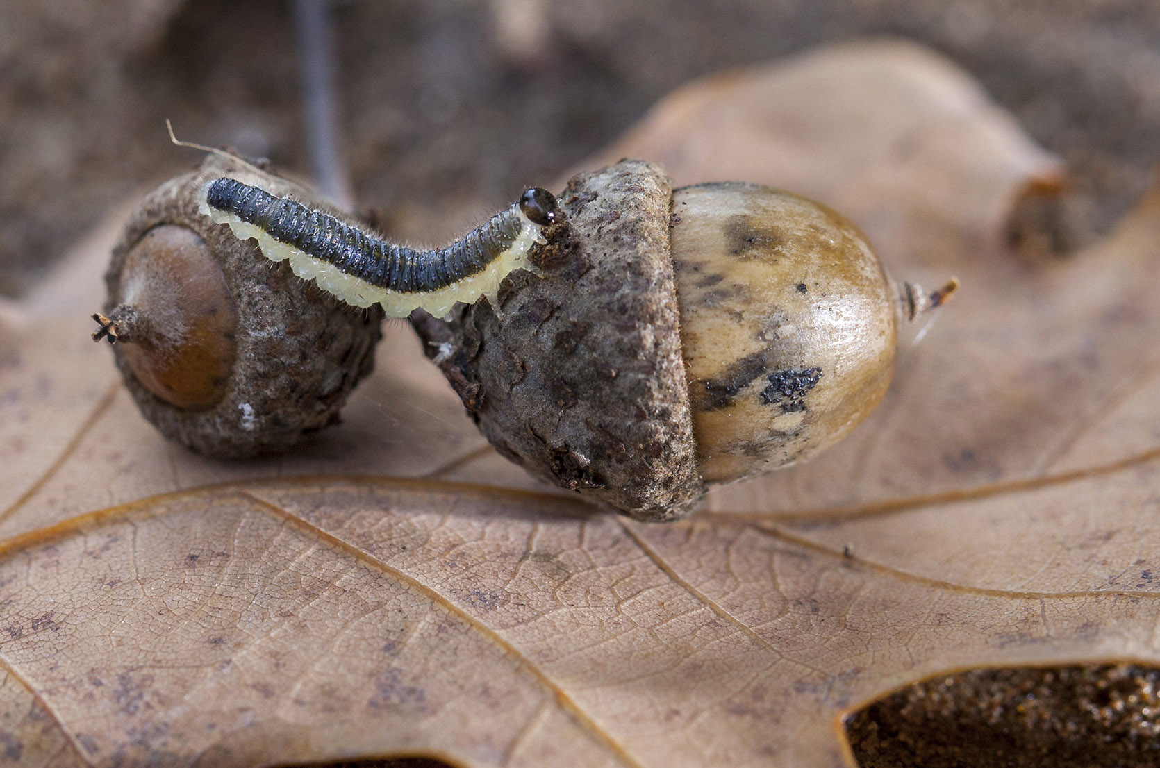По моему с ежевики. Вдоль лесной дороги рос шиповник и ежевика, под кустами лежали вот эти жёлуди.