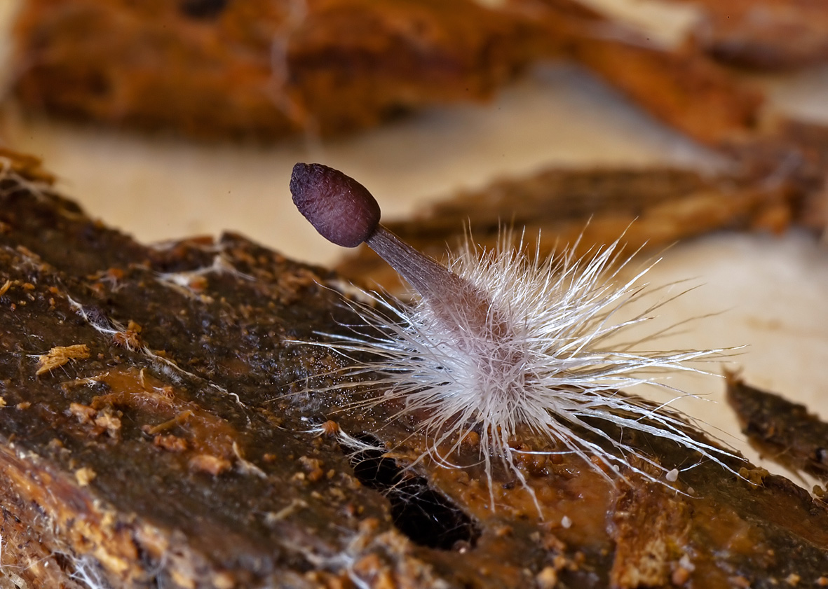 Размером около 1 см, снаружи сначала волосисто-вязаный, замкнутый, затем открытый – вылитый колокольчик с отогнутым краем. Растет на гниющей древесине, часто на погруженной в землю.