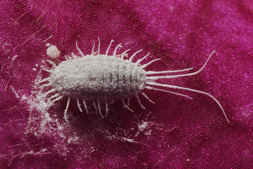 Судя по морфологии, это щетинистый мучнистый червец - Pseudococcus longispinus.