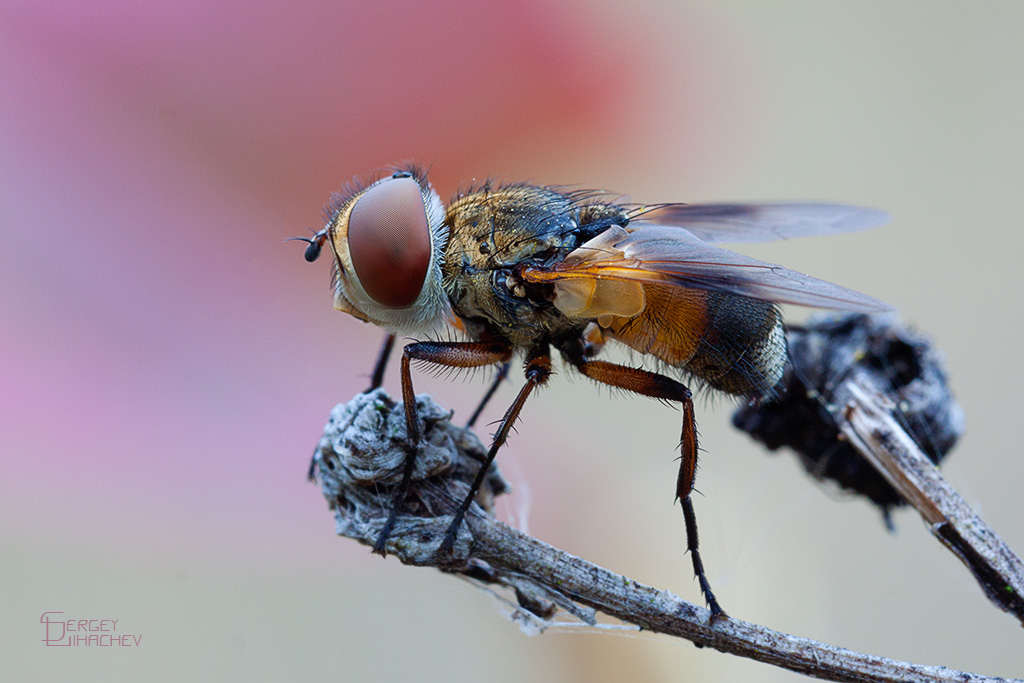 Этот комок никак не убрать было. Муха за него лапой держится. И уже довольно активная. Спокойно не сидела.