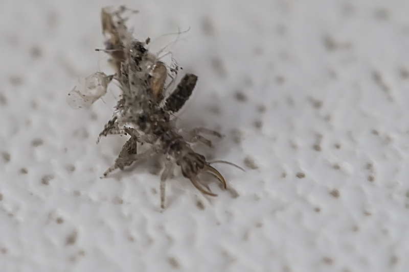 Личинка златоглазки, уж как она в больничку попала, вообще непонятно, летать не могёт, неужели доползла...  Не знаю, может ветром занесло в окно? Этаж всего второй был, здание старое, парк в притык. Они все на подоконнике найдены.