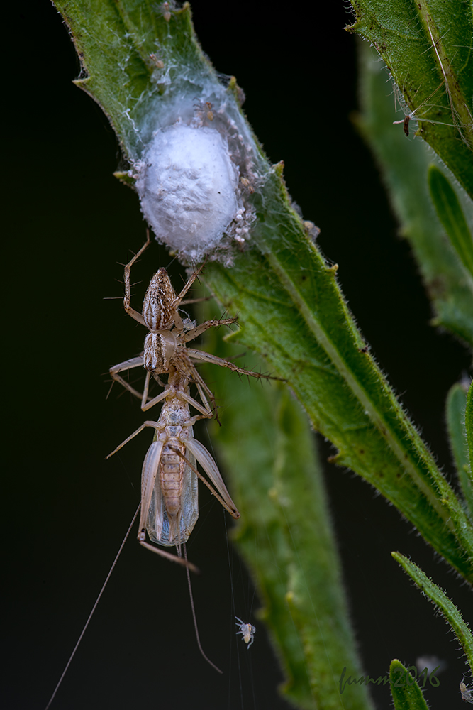 Отличный момент  ,один паучонок уже спускается дабы осмотреть добычу и найти самый лакомый кусочек.