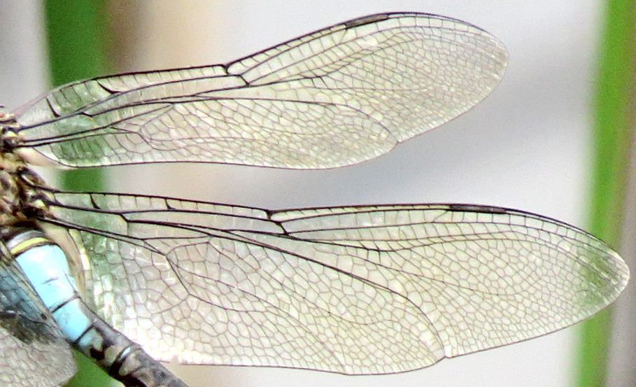 Накачал определителей, Фауну стрекоз Украины, да, это дозорщик темнолобый, больше быть некому. По литературе, приведенной в "Фауне..." (С.М.Горб и др., 2000) этот вид зарегистрирован в Киевской области единственный раз в 1917 г. А фигура жилкования действительно искажена острым углом съёмки, зато тут можно понять, что крыло на самом деле вовсе не плоское, а жилки образуют объёмный каркас, по крайней мере сразу за передней кромкой.