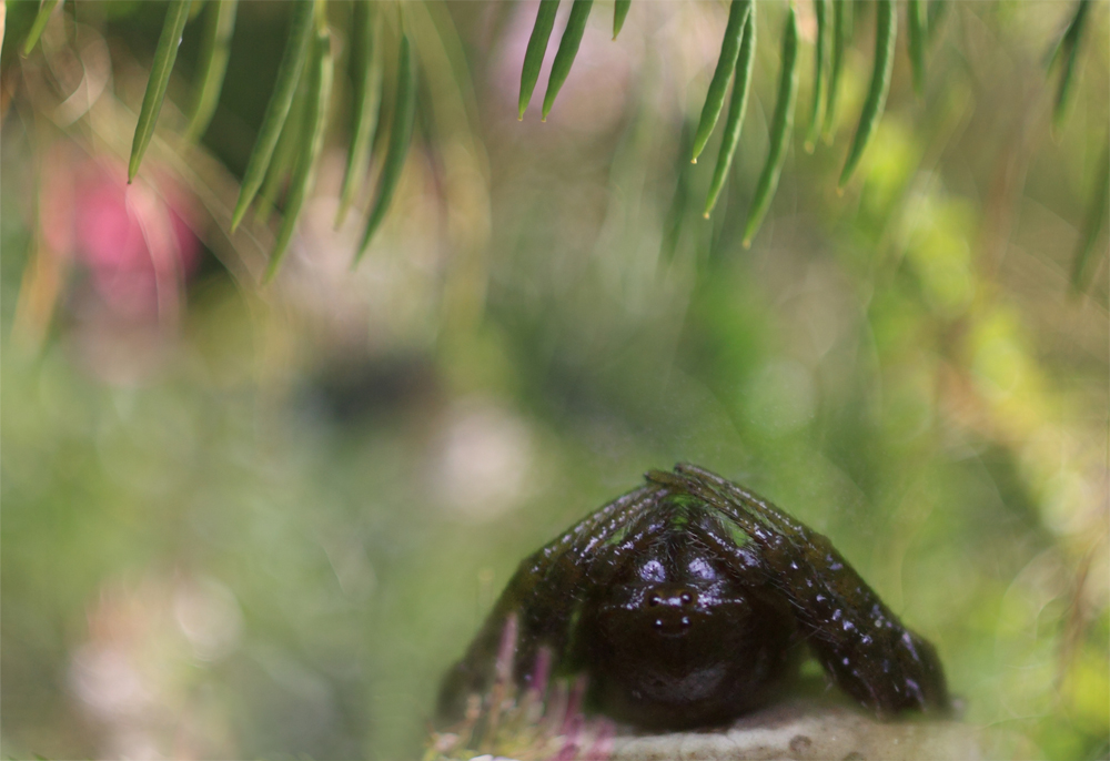 Длинноносый колдун (голова чуть выше паука) заморозил бедного паука!