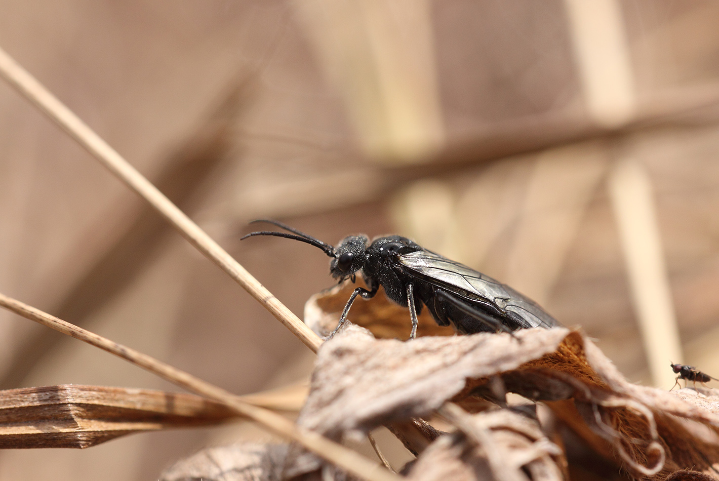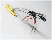 Sceliphron spirifex. Яйцеклад очень длинный, а брюшные сегменты не могут так растягиваться за счет мембранозных участков, как это происходит у риссин, например. Вертикально, яйцеклад не воткнуть - длины ног не хватит, вот и приходится изгибаться (он подвижно зафиксирован между тазиками ног).