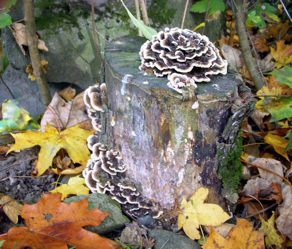 Спасибо. Не заглядывала, признаться, под шляпку, щёлкнула на бегу, торопясь на маршрутку. А размер этой "розы" , помнится, побольше - диаметр не менее 20 см. Но из того, что отсмотрела на фото и в определителях, разноцветный трутовик более всего похож